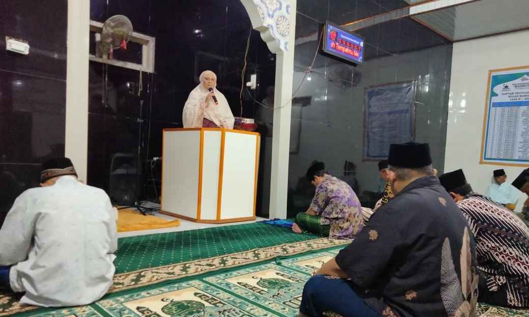 Rejang Lebong (HUMAS)---- Penyuluh Agama Islam (PAI) Kantor Urusan Agama (KUA) Kecamatan Curup, Ibu Olih Sholihat, menyampaikan ceramah agama penuh makna pada sholat tarawih di Mushollah Nurul Hikmah, Jumat (22/3). Dalam ceramahnya, beliau mengajak para jamaah untuk menghayati dan mengamalkan kalimat toyyibah dalam kehidupan sehari-hari.